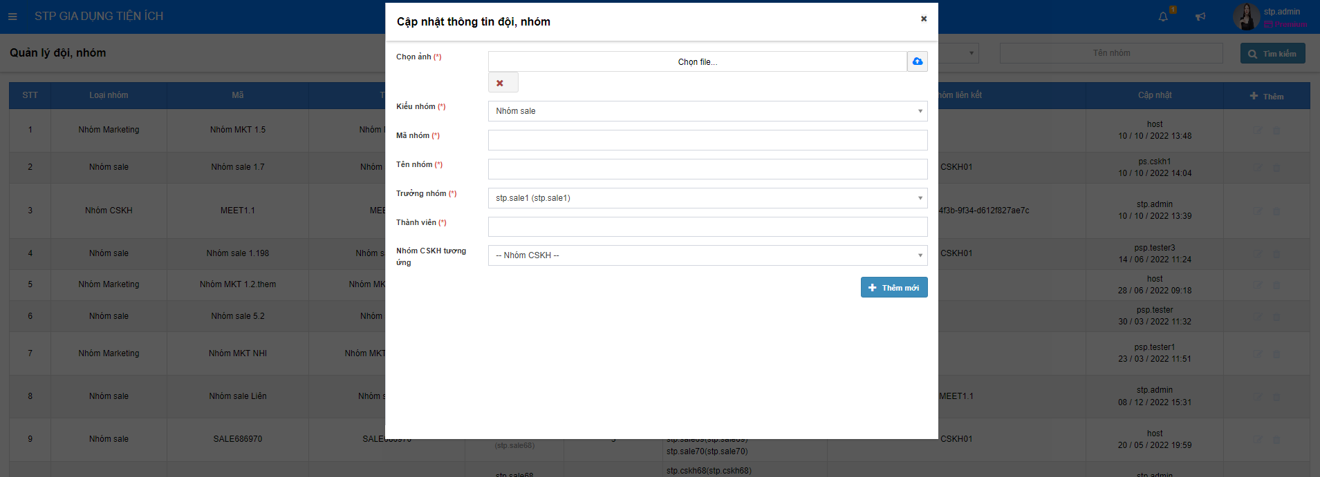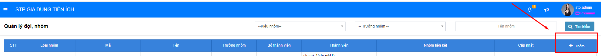 3. Chọn **Thêm mới** để thêm nhóm