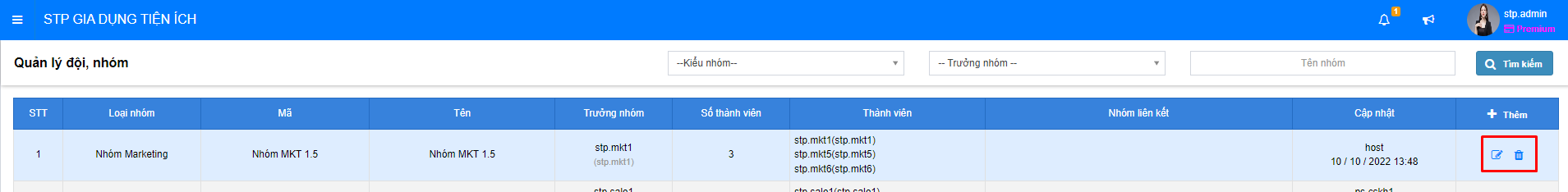 # 1.2.2. Quản lý đội nhóm
