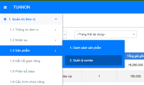 **Bước 1:** Truy cập mục combo tại 1.3.2